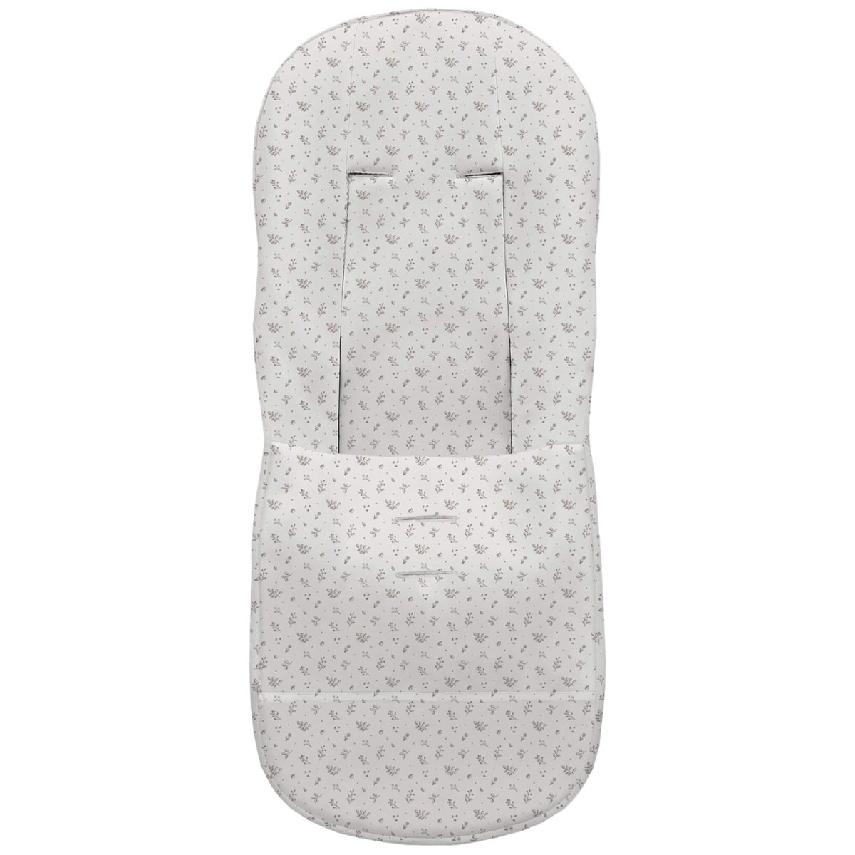 La funda en tejido batista estampada, en la zona de los pies para las rozaduras de los zapatitos y la suciedad un tejido muy resistente de fácil limpieza y realizado a partir de plásticos reciclados.