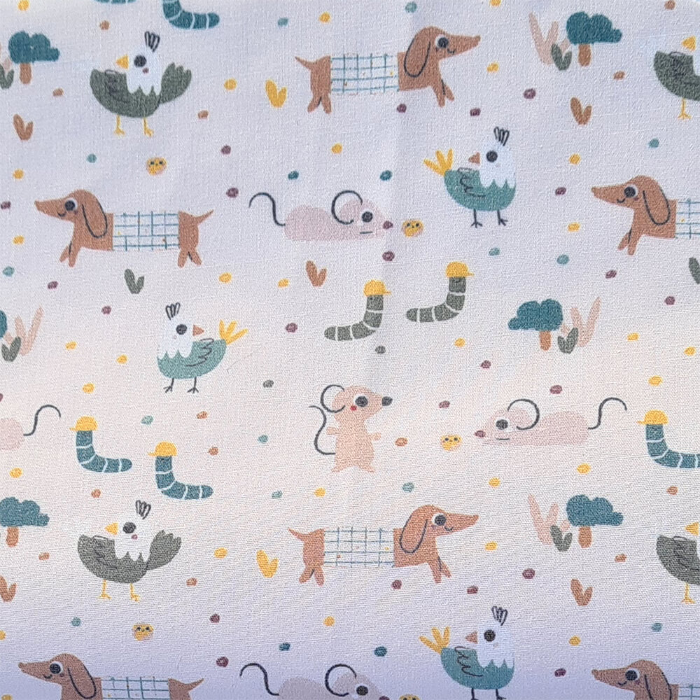 La funda en tejido batista estampada, en la zona de los pies para las rozaduras de los zapatitos y la suciedad un tejido muy resistente de fácil limpieza y realizado a partir de plásticos reciclados.
