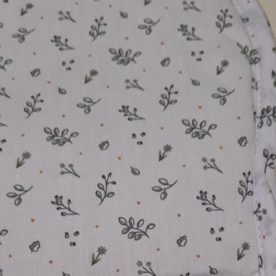 Por un lado en tejido batista estampada, por el otro lado en tejido piqué de algodón en liso. El relleno de la funda es una micro fibra hueca para mayor confort del bebé y muy buena transpirabilidad.