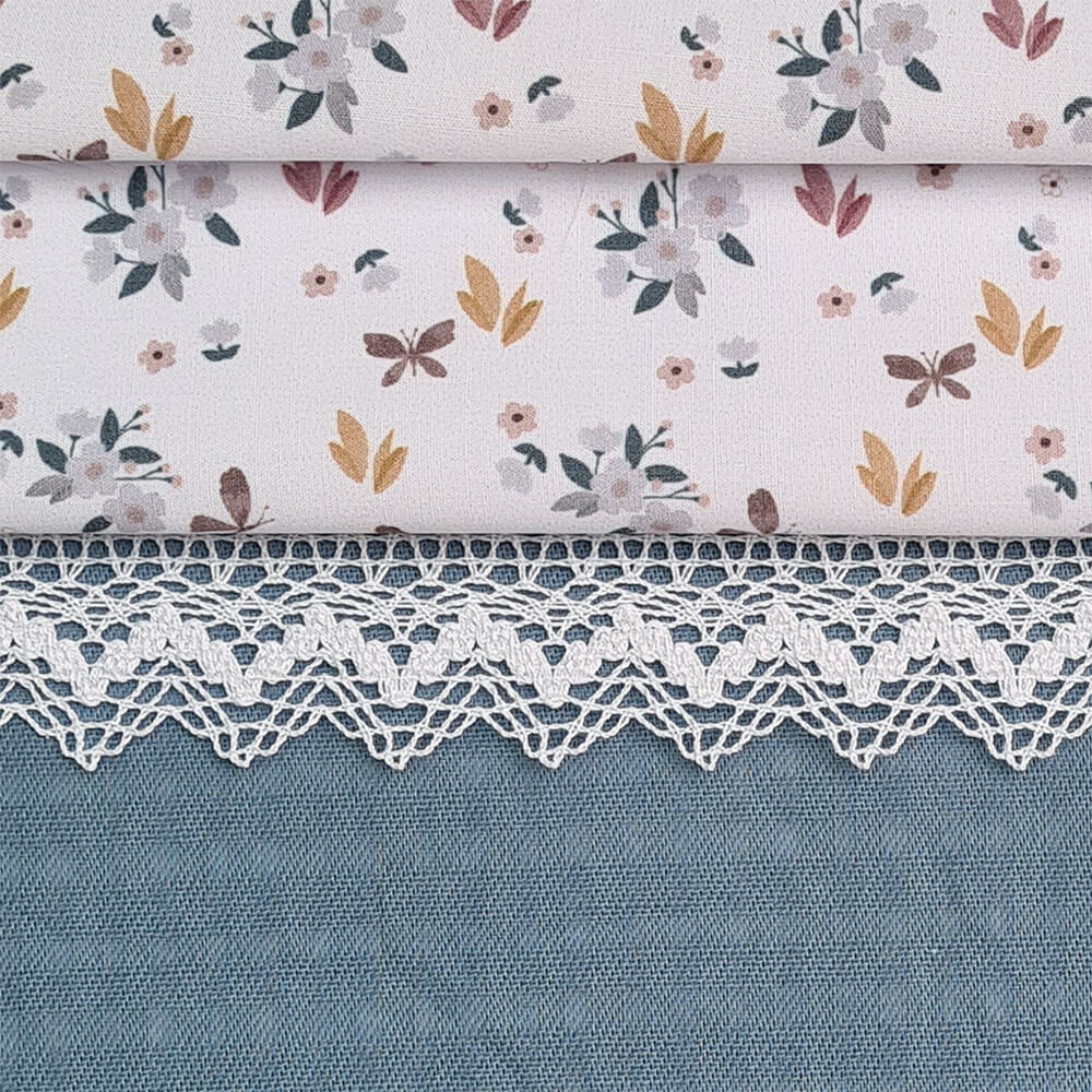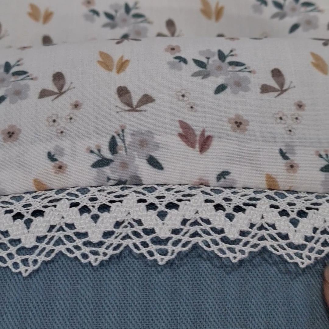Se compone de dos piezas, la funda que va sobre el colchón del capazo en tejido batista estampada con volante fruncido en todo el borde, queda muy bonito y permite cubrir la cremallera para no rozar al bebé en las piernitas.