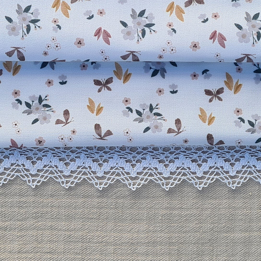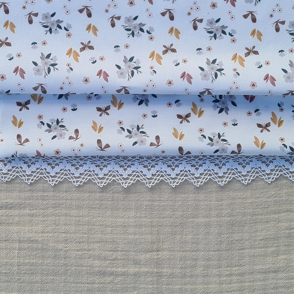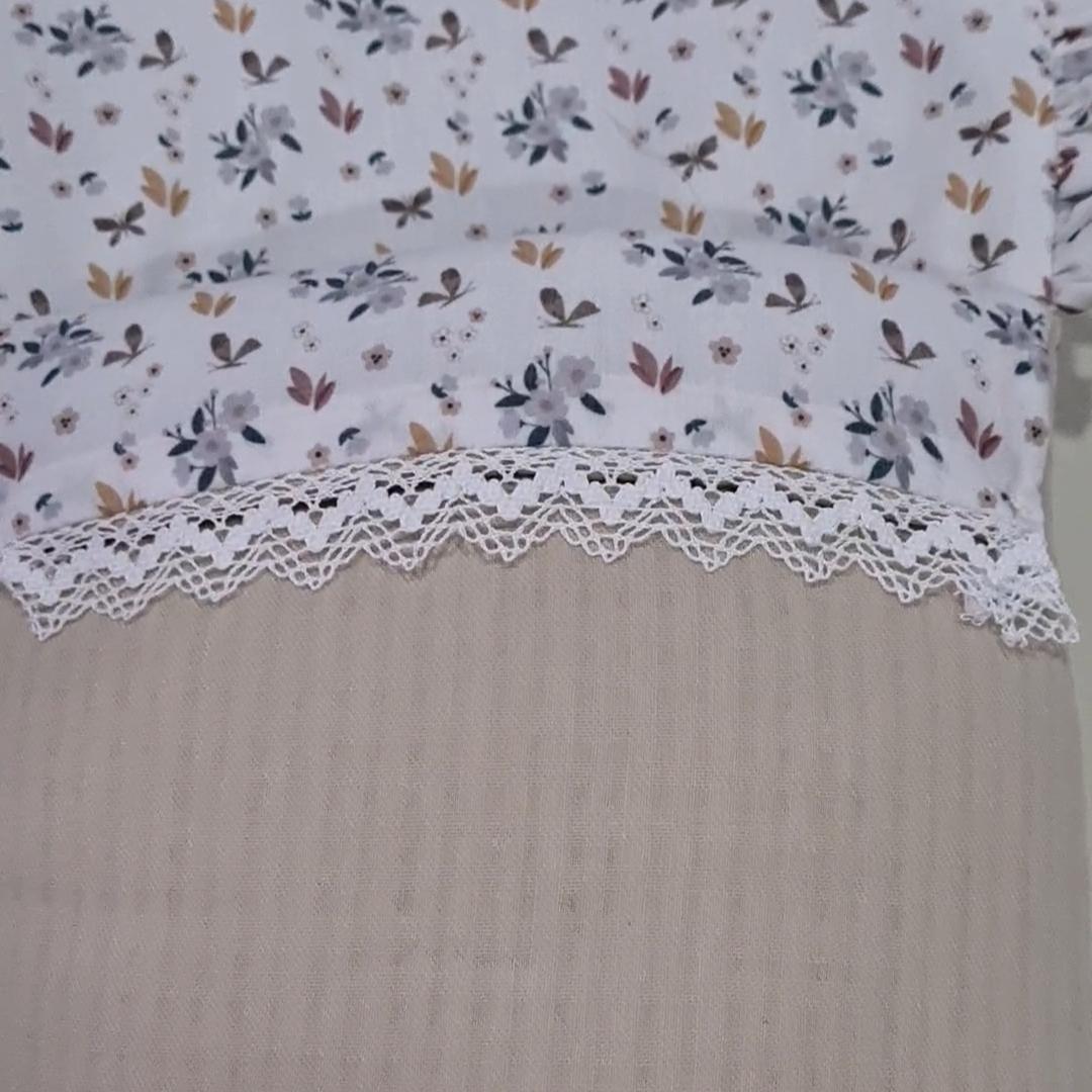 Se compone de dos piezas, la funda que va sobre el colchón del capazo en tejido batista estampada, en todo el borde lleva un volantito que permite cubrir la cremallera para no rozar al bebé en las piernitas.
