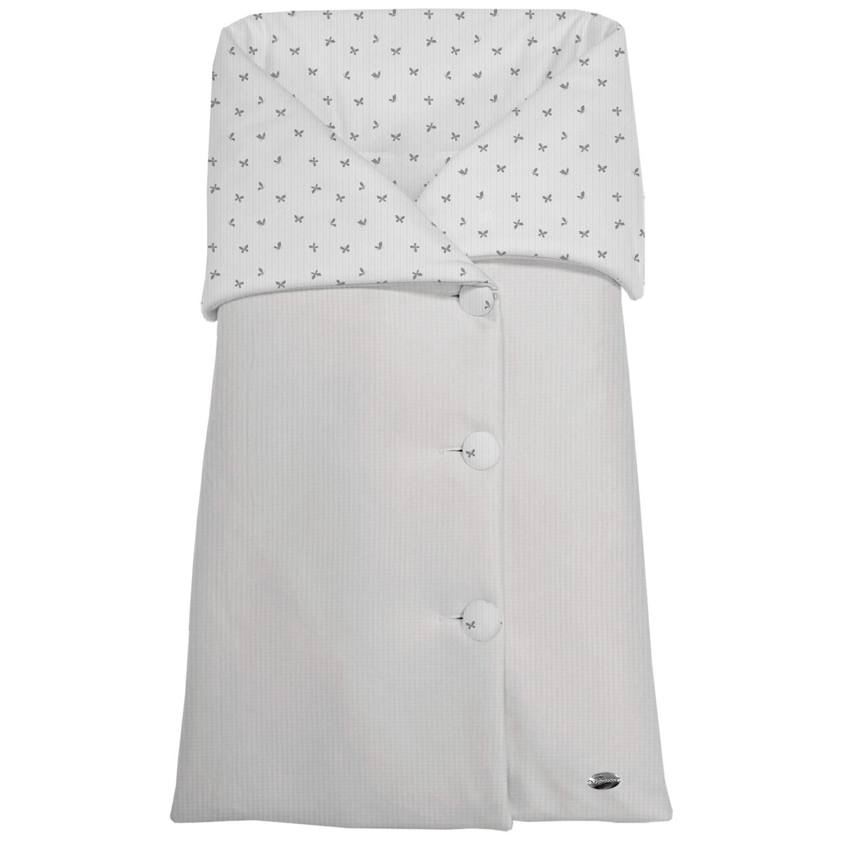 Es un saquito cruzado en los laterales y en la zona de cabecita va abierto, apto para todo tipo de capazos.