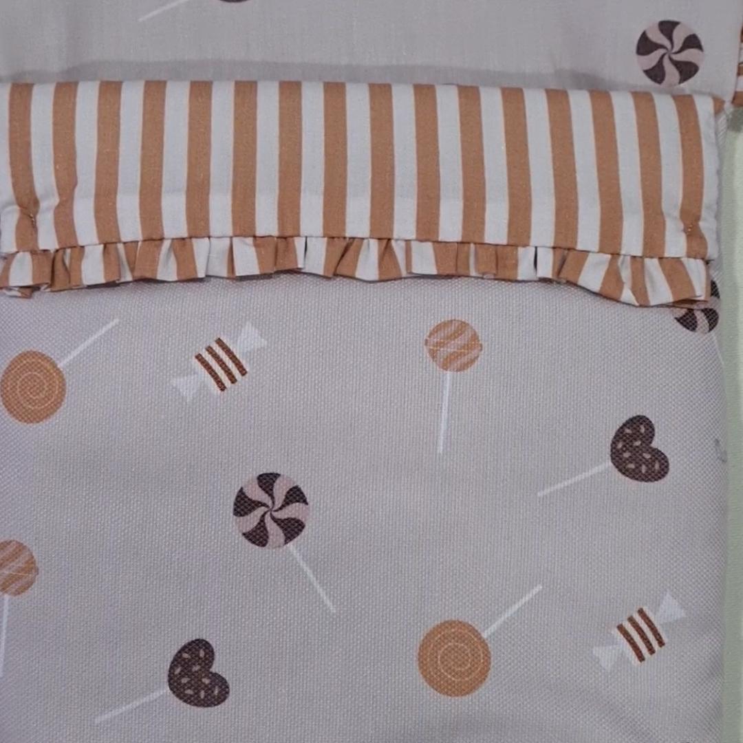 La tapa del saco en piqué estampado, se une a la funda mediante cremalleras laterales, siempre a tono, que puedes abrir como necesites o quitar la tapa entera y te queda la funda para usar como colchoneta en los días de calor.