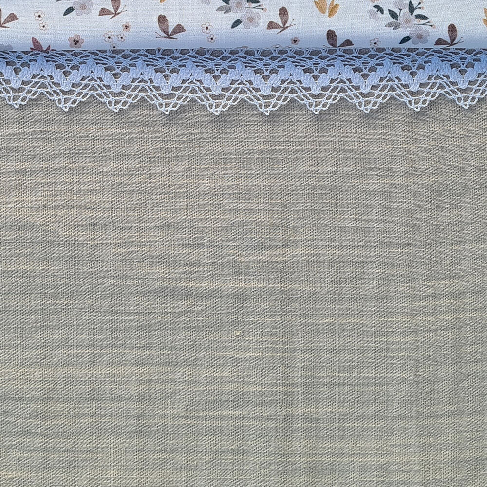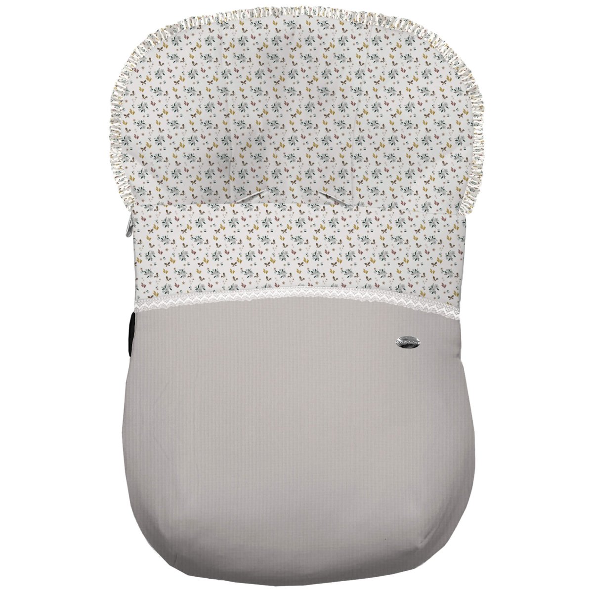 El tejido para la funda batista estampada con volante fruncido en todo el borde. Con un relleno de micro fibra hueca para mayor confort del bebé y muy buena transpirabilidad. Por el revés un tejido rejilla 3D para una mejor ventilación.
