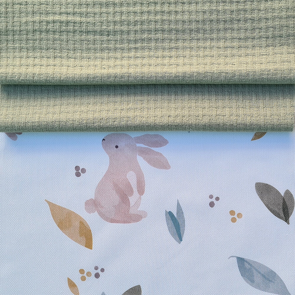 4. Colcha en piqué estampado, va por encima del capazo, cubriendo la parte de arriba del capazo y los bordes en lateral, es una colcha con cinturón para que se ajuste mejor.