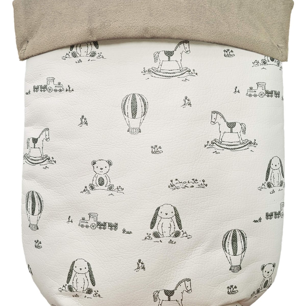4. Colcha que va por encima del capazo, cubriendo la parte de arriba del capazo y los bordes en lateral, es una colcha con cinturón para que se ajuste mejor. En tejido polipiel estampada por fuera, una polipiel muy suave y agradable.