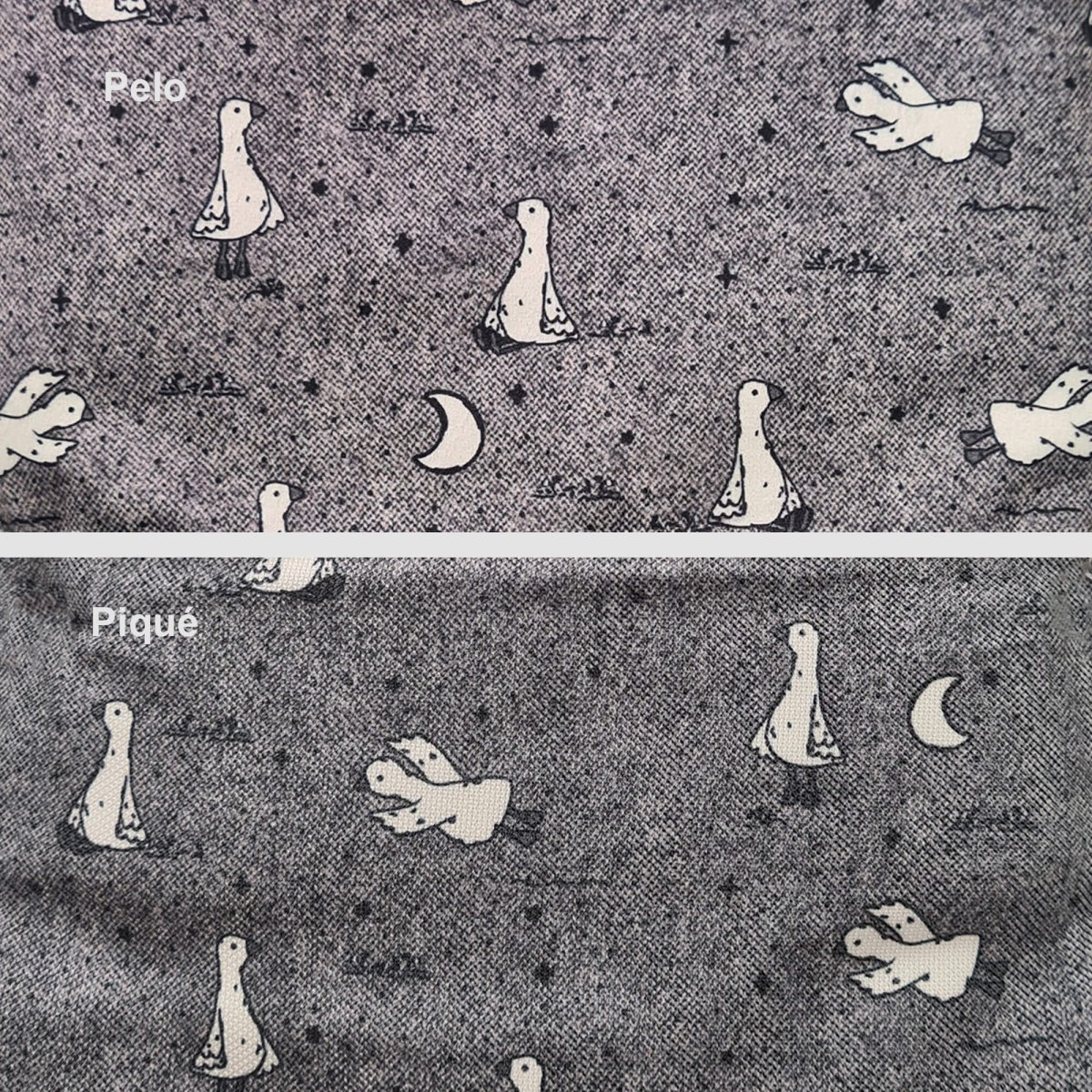 1. Funda que va sobre el colchón del capazo en tejido piqué o pelo estampado muy suaves, en todo el borde lleva un volantito que permite cubrir la cremallera para no rozar al bebé en las piernitas.