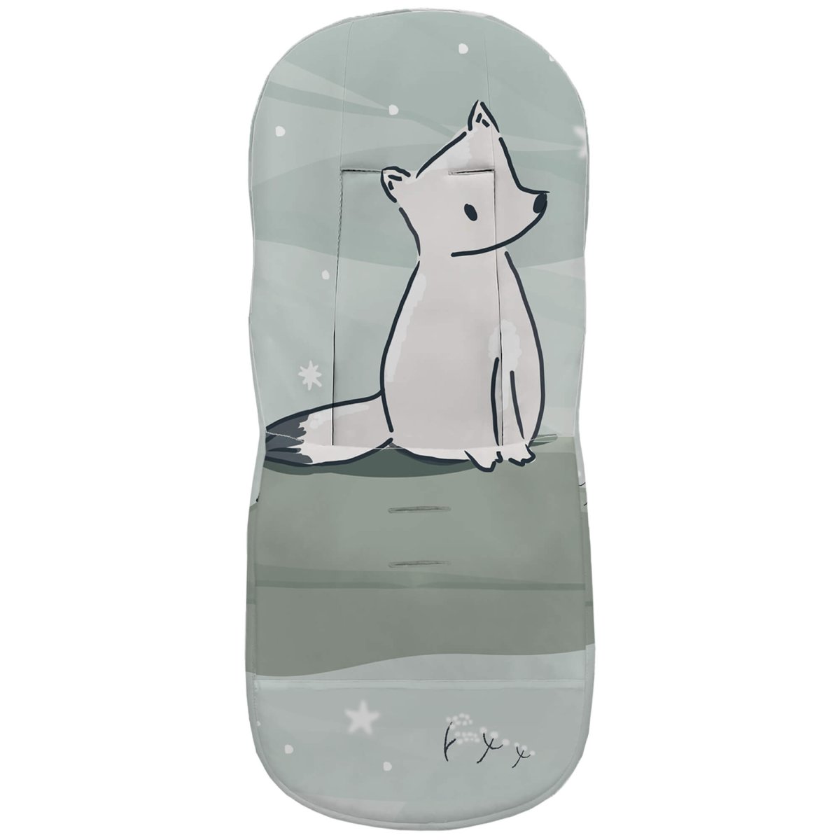 La funda en tejido piqué estampado, en la zona de los pies para las rozaduras de los zapatitos y la suciedad un tejido impermeable de fácil limpieza y realizado a partir de plásticos reciclados.