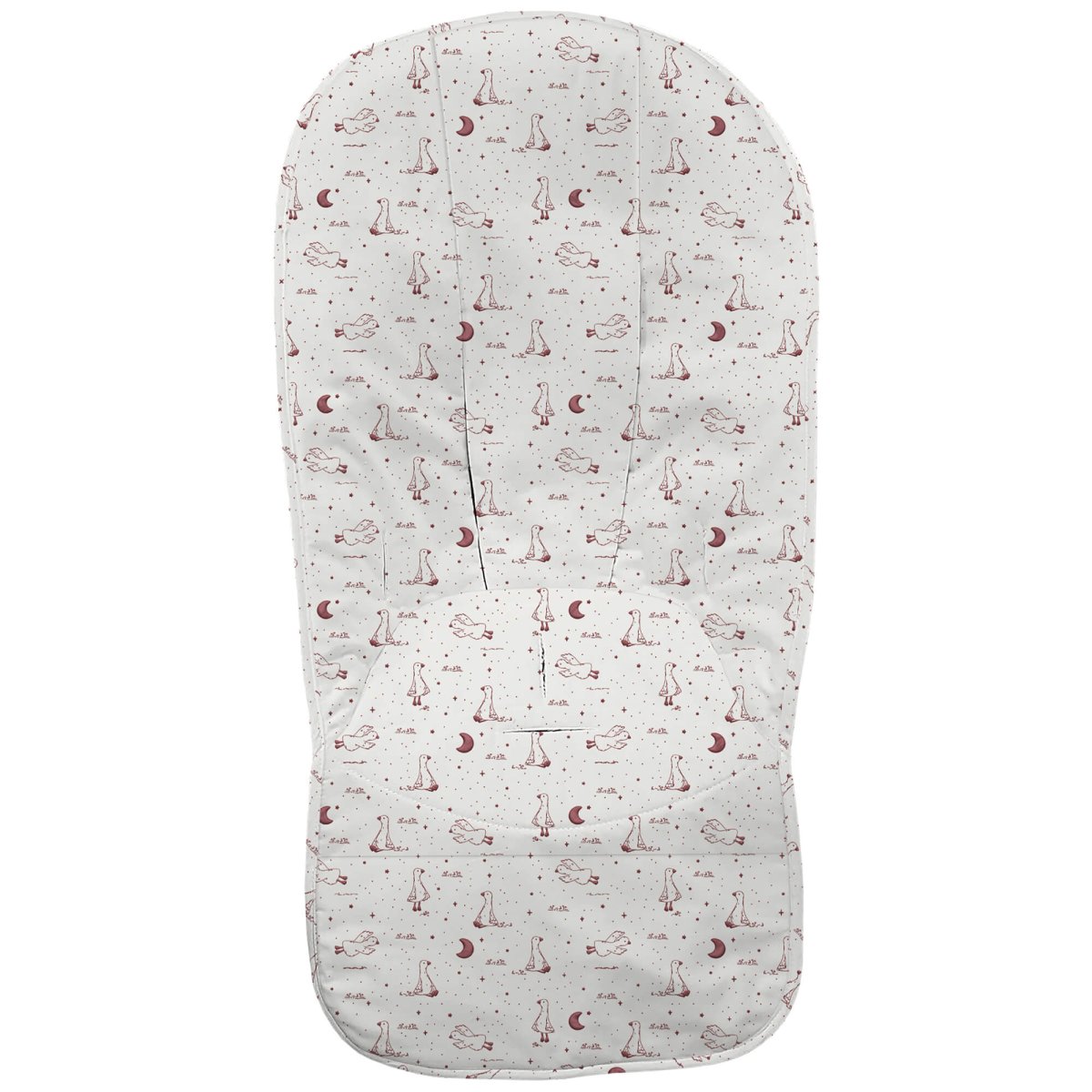 La funda en tejido piqué estampado, en la zona de los pies para las rozaduras de los zapatitos y la suciedad un tejido impermeable de fácil limpieza y realizado a partir de plásticos reciclados.