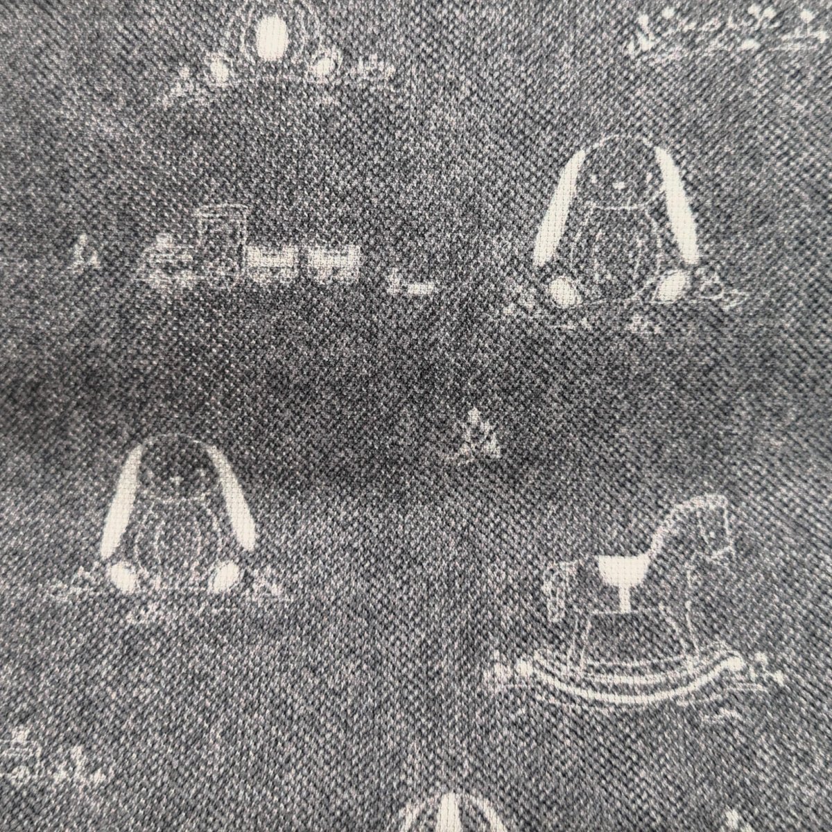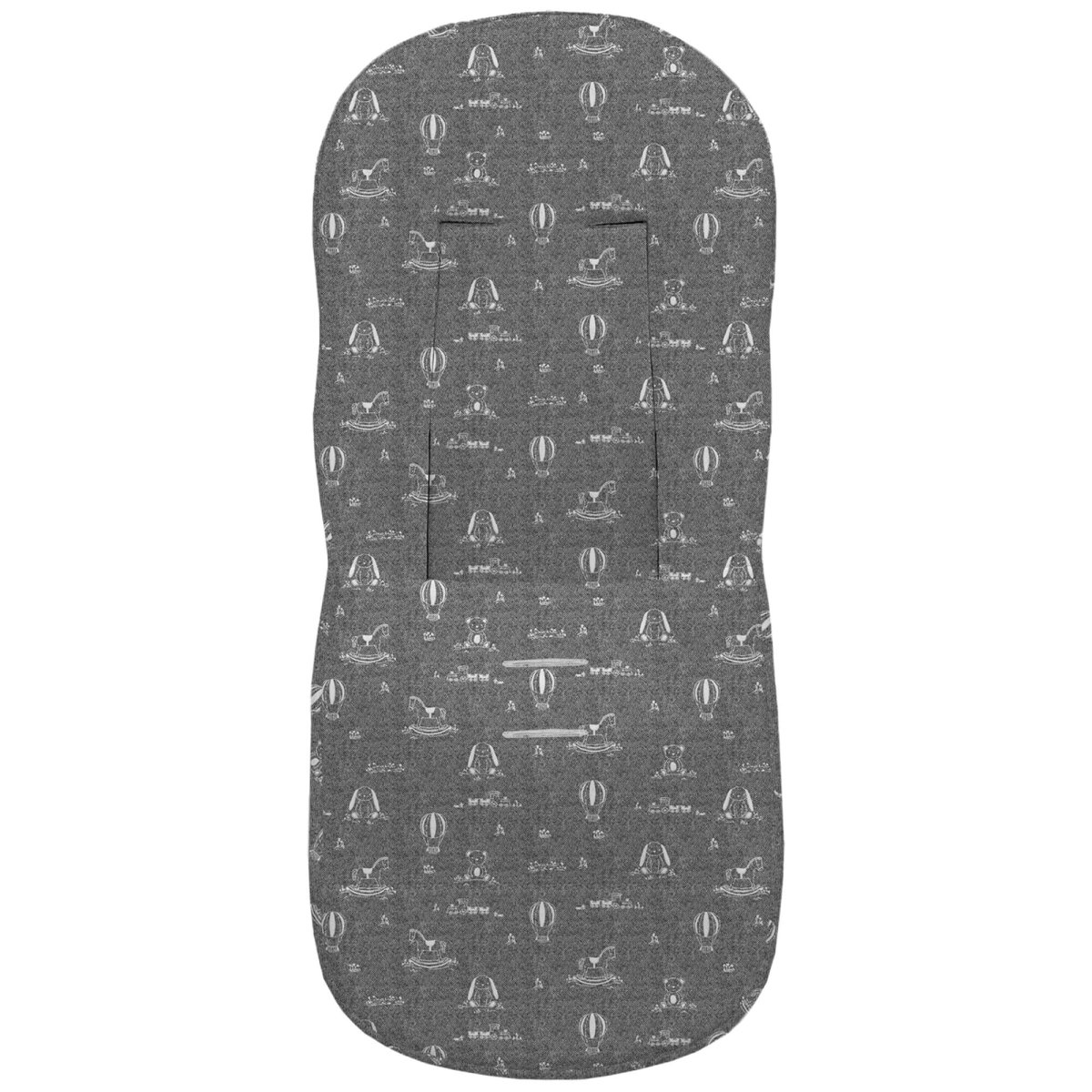La funda en tejido piqué estampado, en la zona de los pies para las rozaduras de los zapatitos y la suciedad un tejido impermeable de fácil limpieza y realizado a partir de plásticos reciclados.