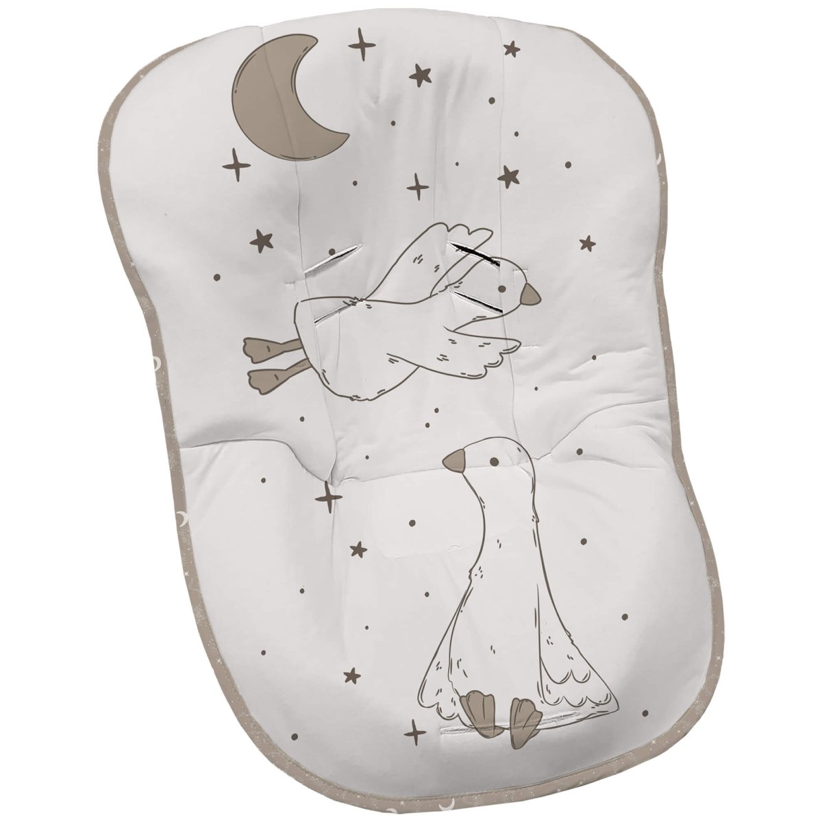 El tejido para la funda en piqué estampado. Con un relleno de micro fibra hueca para mayor confort del bebé y muy buena transpirabilidad. Por el revés un tejido rejilla 3D para una mejor ventilación.